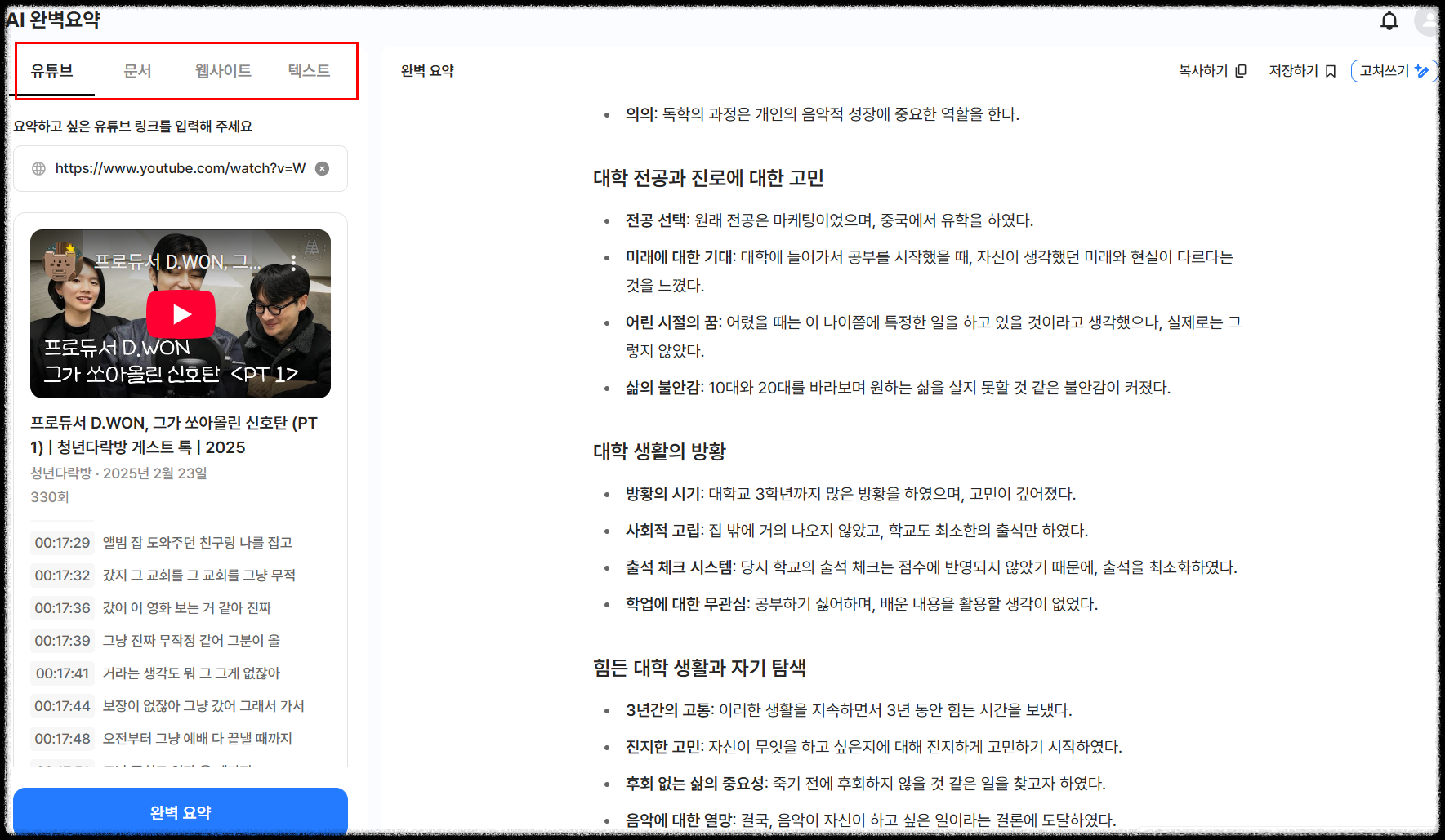 유튜브,문서,웹사이트,텍스트 까지 해당 링크나 문서등을 입력하면 요약을 자동으로 해줘서 편리합니다.